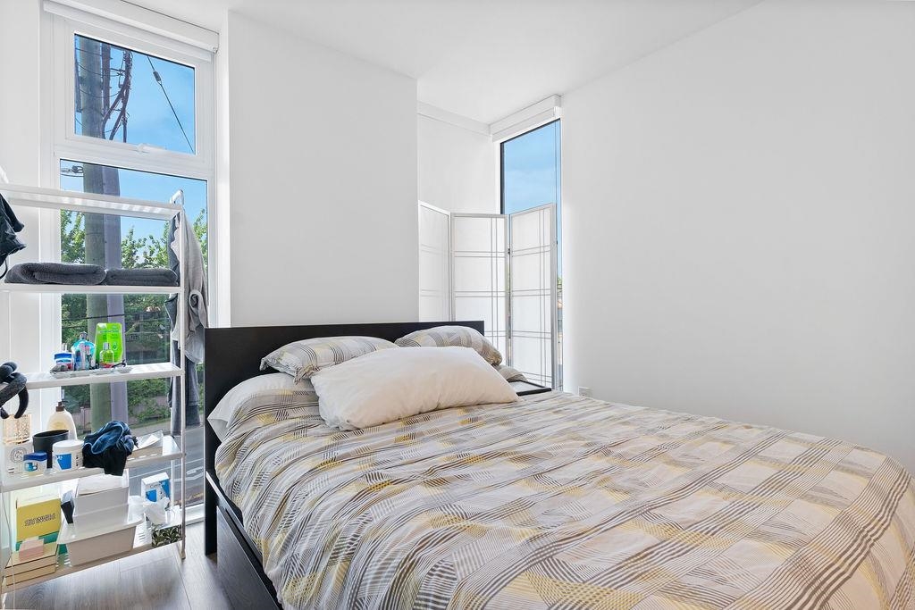 This bright and spacious 2-bedroom, 2-bathroom corner unit offers a thoughtfully designed layout with separated bedrooms for added privacy. Priced $130K less than previous purchase price! Enjoy premium finishes throughout, including Bosch appliances with a gas cooktop, and air conditioning. Step out onto the generous balcony. The primary bedroom features a walk-in closet and a private ensuite bathroom. You’ll also enjoy peace of mind with the remaining 10-year home warranty and access to an impressive array of amenities: a rooftop terrace with garden and BBQ area, a fully equipped fitness centre, concierge service, a multi-purpose room with kitchen, business rooms, and a 4,700 sq. ft. daycare with a large outdoor play area. Parking and storage included!