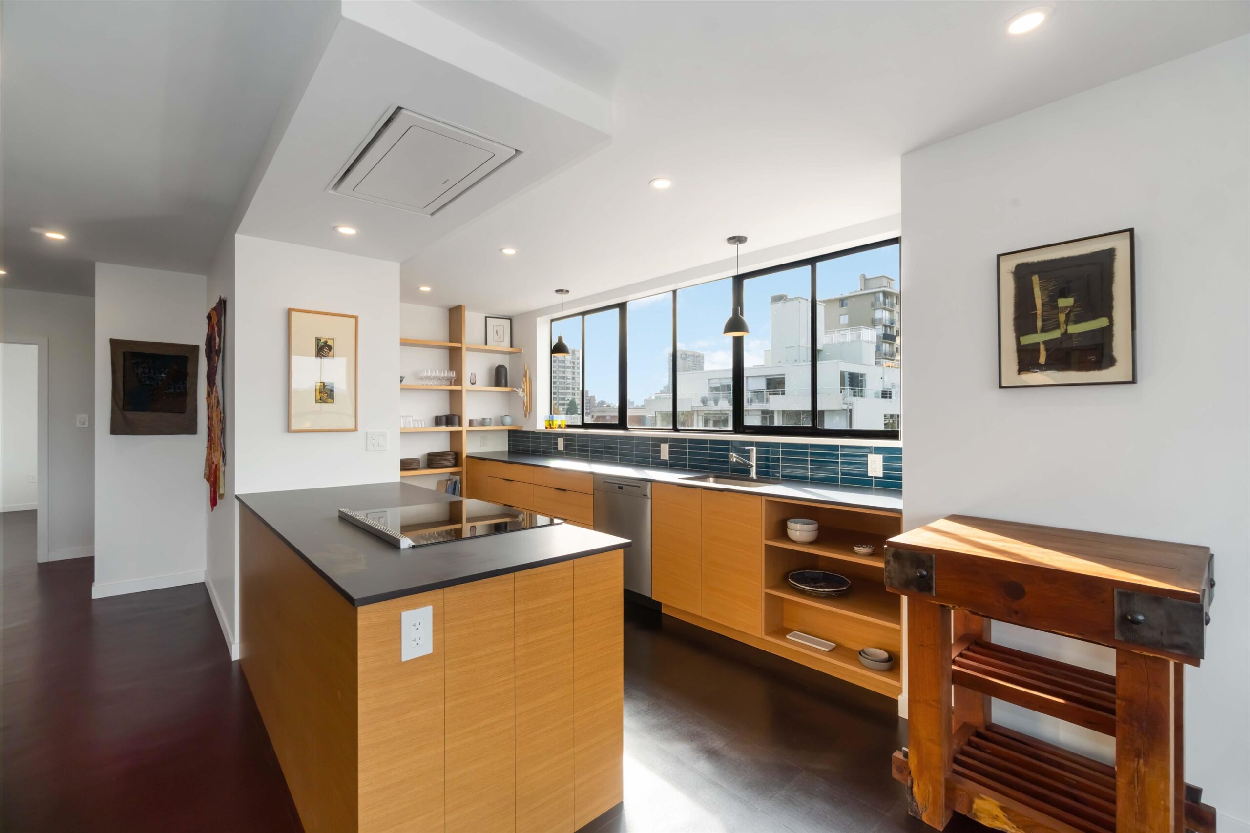 Forever views of Stanley Park, Lost Lagoon & the Marina from this dramatic 3-bedroom, 2-bath penthouse co-op-beautifully reimagined in 2023 with artist-designed renovations & sleek, minimalist lines throughout. Features include black cork floors, a spacious open-plan living & dining area, gourmet kitchen, custom built-in seating, and expansive windows showcasing the stunning views from every room. Perched atop Chilco Towers, a well-maintained concrete building adjacent to Stanley Park, this home includes secure indoor parking, a storage locker, elevator access, convenient visitor parking, and a spectacular rooftop deck with panoramic views. Co-op ownership requires a 35% down payment. There’s no Property Transfer Tax, and monthly maintenance fee of $1,635 covers heat, hot water, and TAXES!